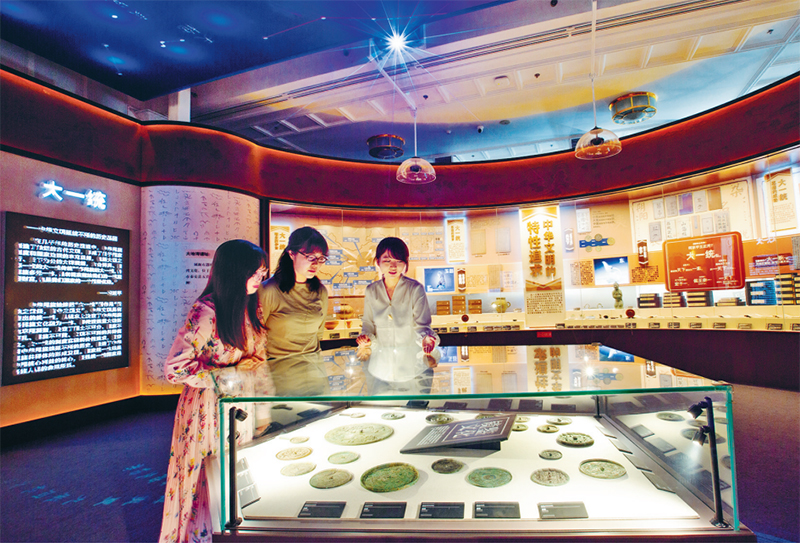铸牢中华民族共同体意识文物古籍展正在北京民族文化宫展出,2900余件文物古籍及展品让观众近距离感受中华民族共同体形成发展的历史进程,聆听各民族交往交流交融的故事。图为2025年9月24日参观者驻足观看展品的现场照片。 刘新武/摄
